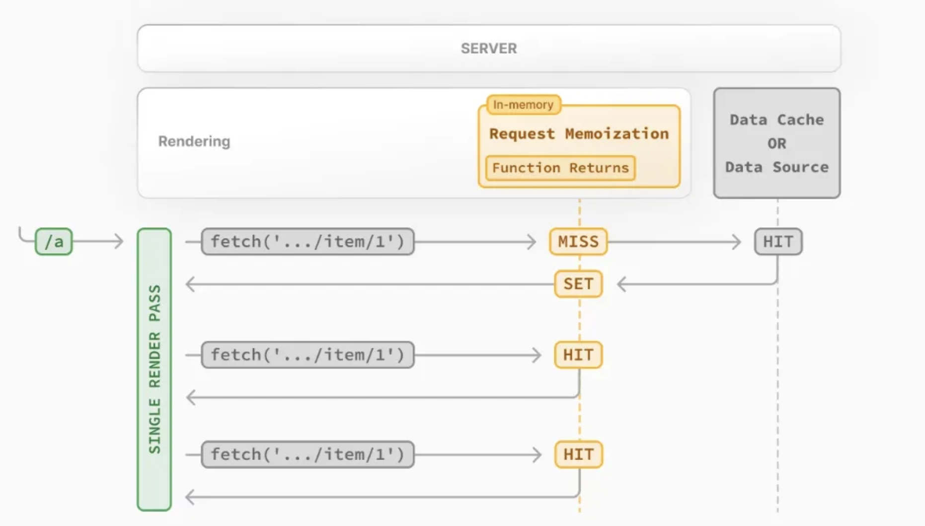 - 렌더링 패스가 완료되면 캐시는 초기화되며, 이후 동일한 요청을 다시 실행하면 새로운 데이터를 가져옵니다.